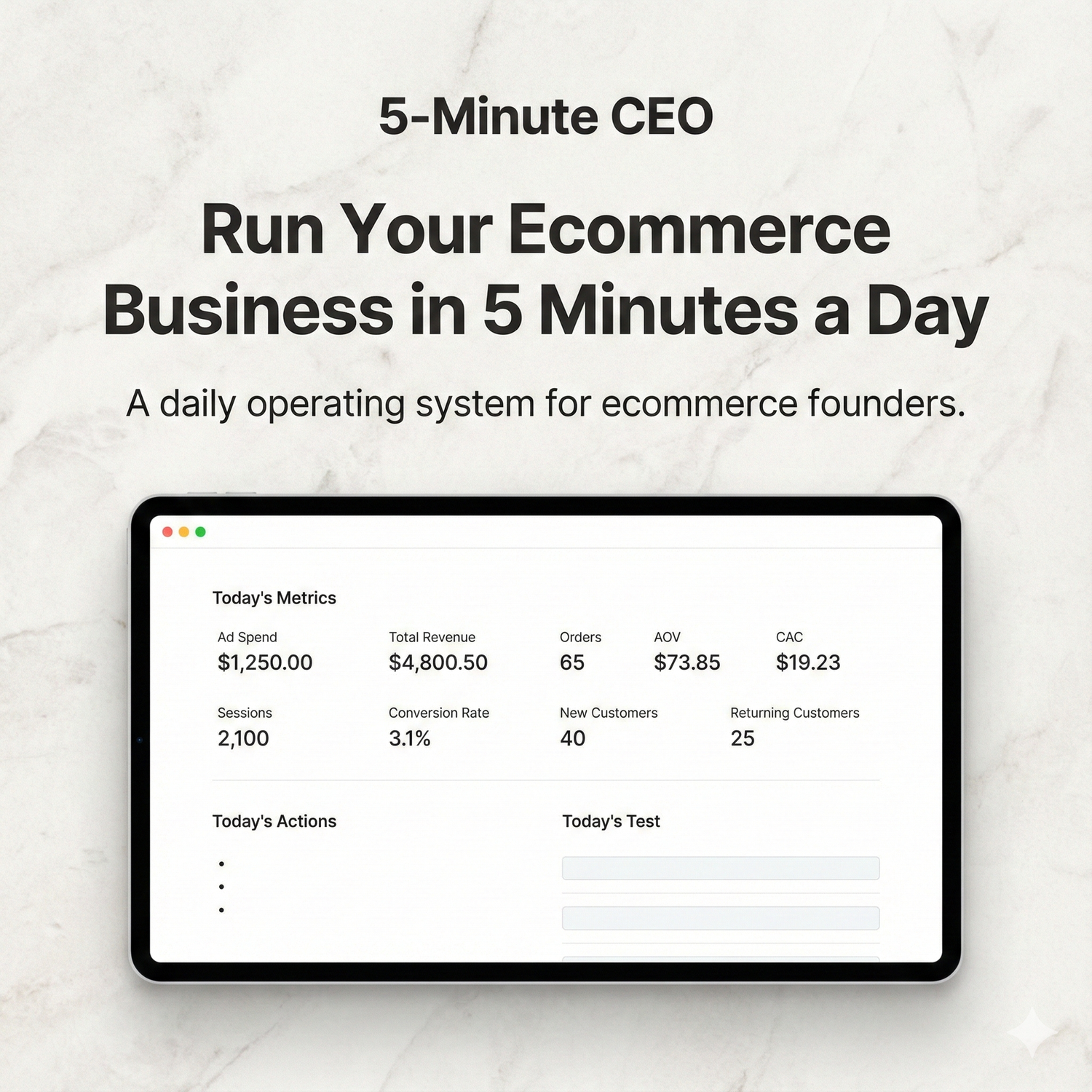 Our 5-Minute CEO system gives ecommerce founders a simple daily framework to move away from reactive decision-making and towards focused execution on the actions that actually grow the business.